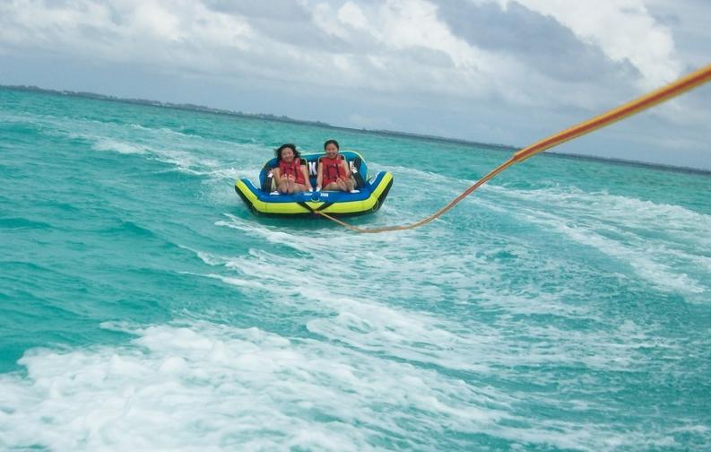 马尔代夫每个岛屿应该都会安排各种各样的活动和节目,当你上岛的时候前台人员就会发一份未来几天你可以在岛上参加哪些活动的单子。我们这几天大概都玩了沙滩排球,自行车,荡秋千,飞镖,乒乓球,卡拉OK,SPA,岛上还有图书馆,网球场,健身房等等。生活悠哉悠哉地,我们两位男士分别和岛上小黑比赛乒乓球,小黑用一瓶可乐打赌,而我们则是用穿着衣服跳进泳池打赌,最终我们赢了,他们信守承诺赠了我们一瓶可乐,好兴奋呀!酒吧里有一个非常像卡卡的小黑,人超好,还送给我们几个大芒果,和我们聊了许多马代的事情,现在好想念他