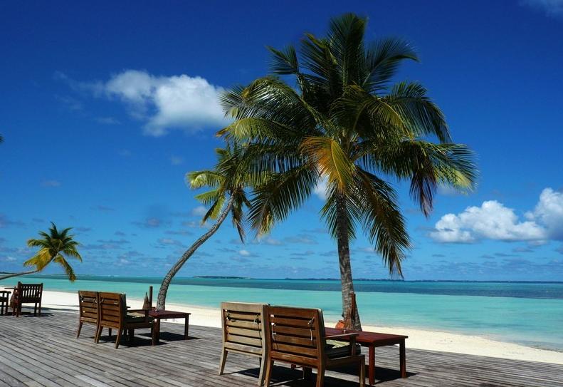 在马尔代夫,从清晨到夜晚,海水的颜色富于变幻,有绿如翡翠,有蓝如水晶,有白如浪花,有深如黑石。它的心情原来也是这般多变,让人有想去揣测的冲动,用一句话去形容它,就是姿态妩媚多娇,内心天真烂漫。