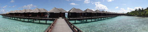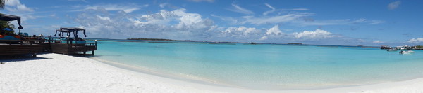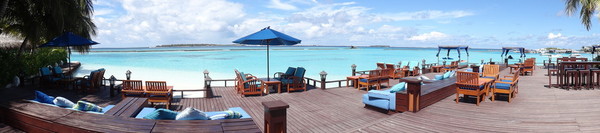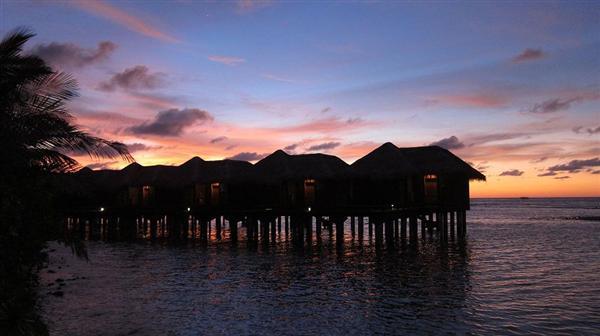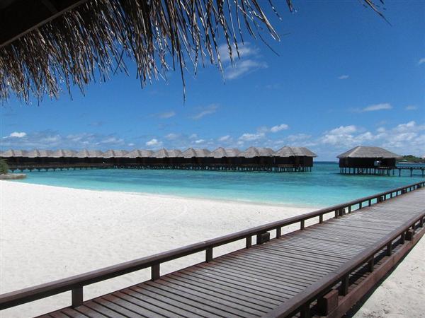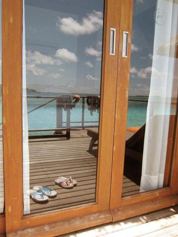 回来时路过独立的沙屋老公说还是不升级的好,出了阳台就是沙子就是大海更有感觉,虽然私密性差了一点。不过沙屋别墅的排水设计还是不太合理,淋浴房没有找坡,晚上洗澡的时候水一直蔓到了阳台,把我们的箱子都泡了,把老公气坏了,直接打电话去前台要求换屋,经过一番交涉,同意提前给我们换到水屋!在异国他乡维权成功还是比较满意的,不过大半夜狼狈的搬行李换屋这样的经历只要一次就好了……