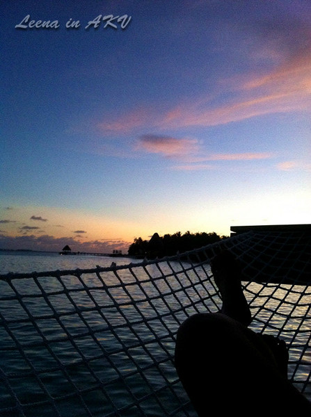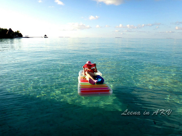 在马尔代夫的这几夜里,睡眠质量前所未有的好,最好的催眠曲便是那亘古不变的海浪声。也许已经活在如梦境般美丽的地方,所以连做梦都省了。每每在阳光里醒来,睁开眼帘便是碧海一片,如梦如幻。趴在阳台的摇床上,枕着七八个抱枕,看天色一点点明亮起来,映红脸颊……这样的闲情逸致,懒散似乎由骨头里散发出诱人的味道。