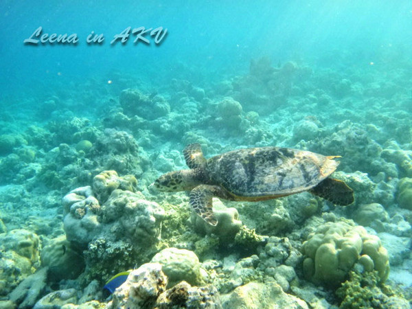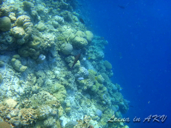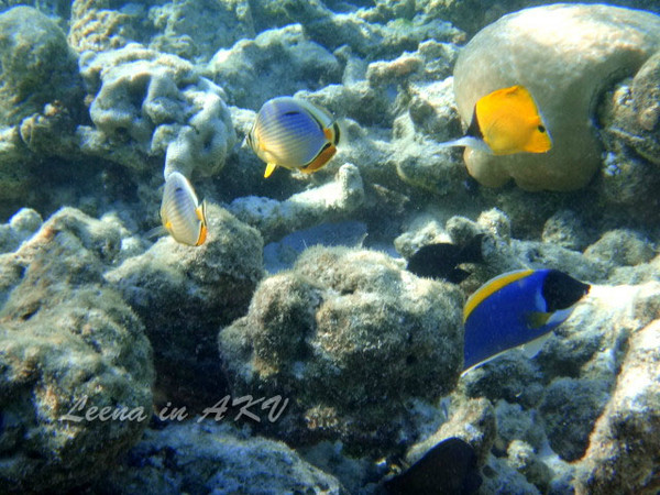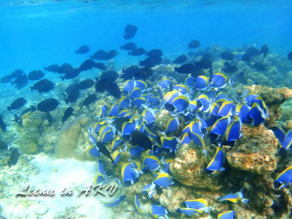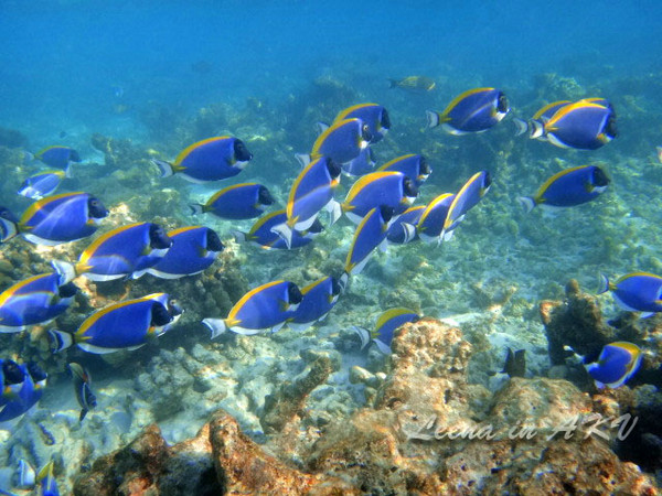 突遇一大群XX鱼——不知道叫什么名字。马尔代夫很多这样蓝色的鱼,不知道这里的海这么蓝,和这鱼有木有一丁点儿的关系呢?哈哈哈,瞎想了一大轮,忽视吧。。
