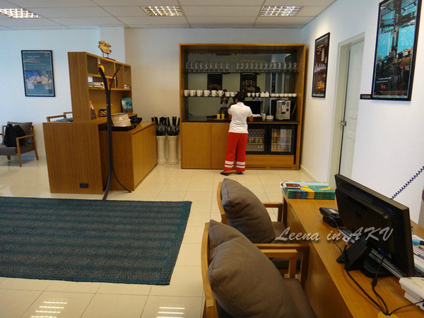 一进休息室,服务生立马递上冰凉的毛巾和冷饮,很是周到