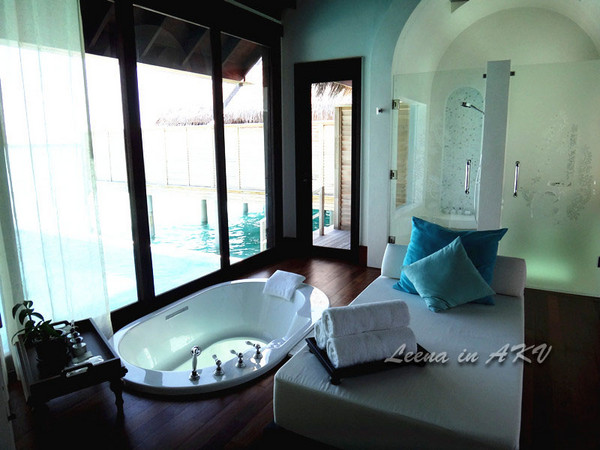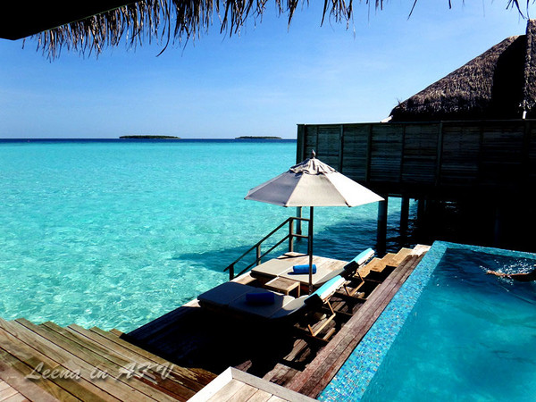 其实,之所以最终选择AnantaraKihavah Villas(简称AKV),除了如上条件外,最吸引我们的还是因为她家的水上泳池别墅面积居然有259平方大,相当自家的两倍大。阳台楼梯直入大海,玻璃底浴缸……不说了,看图吧。