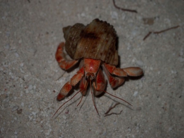 这是岛上最可爱的动物,我个人很喜欢抓它们玩,胆子很小,一有危险就缩头,它就是寄居蟹!岛上好像周四晚上会举办寄居蟹比赛,我没赶上,应该很有意思