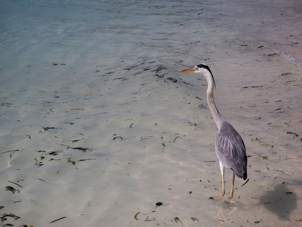 在Kandooma岛上,我数了一下,大概有这样的四只水鸟,飞来飞去,感觉是见多识广,对人一点都不害怕。下面伸长脖子那只是正全神贯注准备抓鱼呢