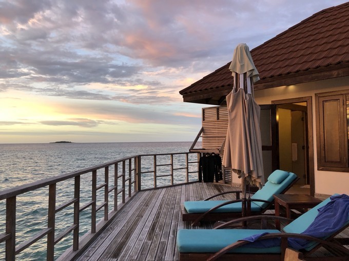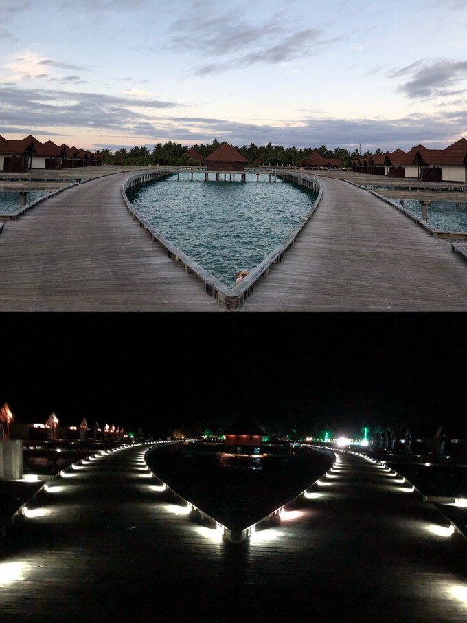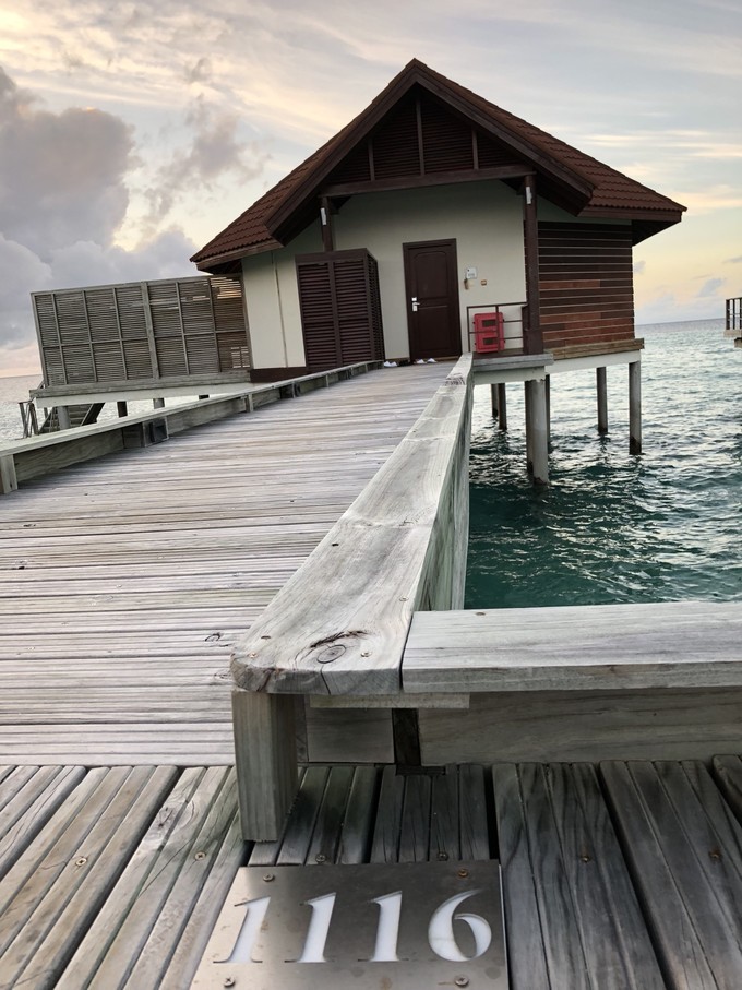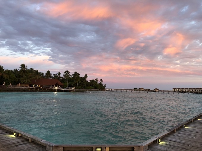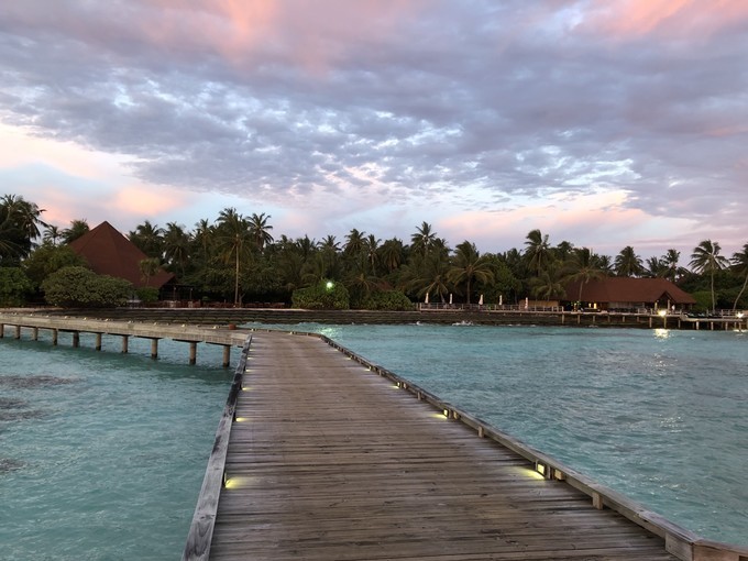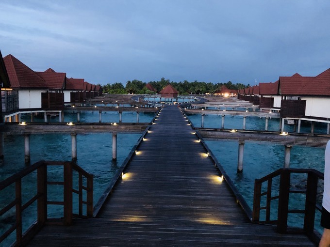 出发啦!我们是8号凌晨的飞机,还算幸运吧,飞机就晚点了1个小时出发的。飞了3个多小时在 曼谷 经停50分钟再飞4个多小时,总算到 马累 机场啦!到 马累 的时间是早上9点左右。一出机场就有举着酒店的牌子的小黑接应噢!跟着他走就到了 鲁滨逊岛 的内陆飞候机室,小黑会去办内陆飞机票➕行李,我们就坐在候机室里吃东西,报个平安,等时间到就去坐内陆飞机啦!内陆飞机50分钟左右到一个中转站里(有酒店小黑接应噢)坐去 鲁滨逊岛 的快艇,大概30分钟左右就到 鲁滨逊岛 啦!