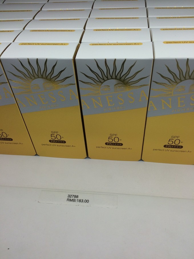 我就随便逛了一下,拍了一张大家经常会问到的安耐晒,记得去年机场是160的,今年180啦,看着货还是比较充足的哈,