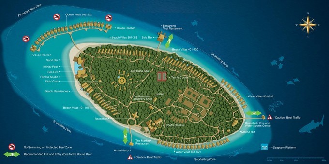 ocean villa with pool:2字头:位于 西北 。景观好,房间更大,甲板可以观赏落日。豪水外珊瑚高,风浪大,较危险。原则上不能直接下海浮潜。