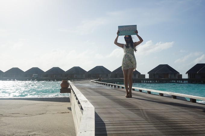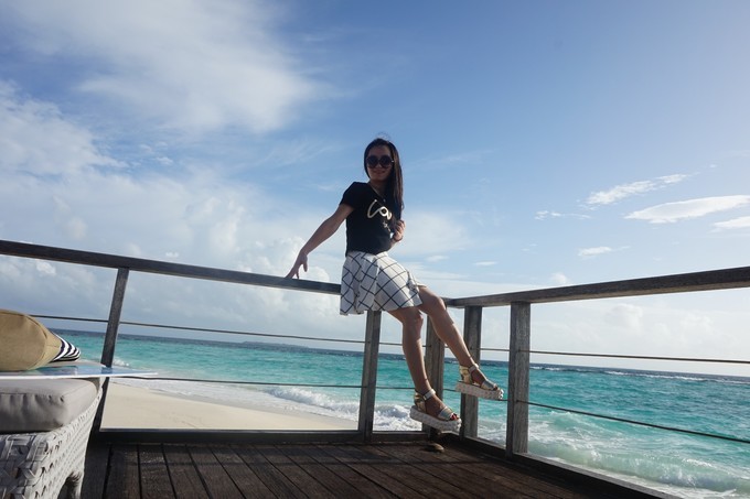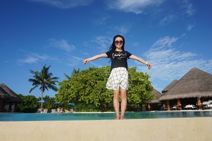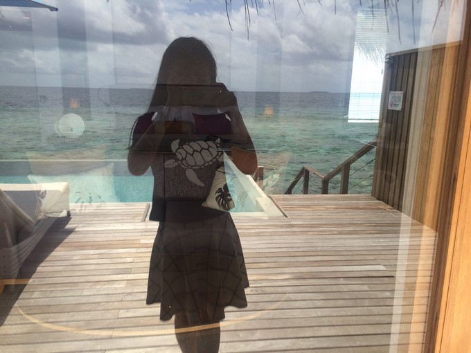 为了达到宣传的效果,摄影师也帮我们去拍了一张的,我们是在water villa with pool 的泳池旁边拍的,实时证明。摄影师确实是摄影师,加上好的相机,确实照片出来的会漂亮一些,