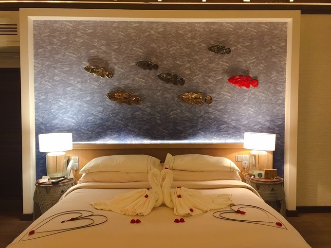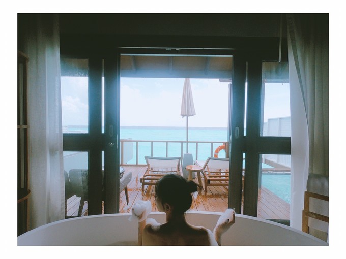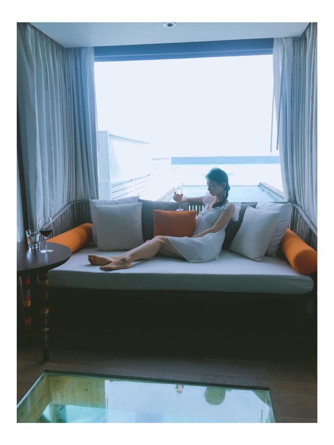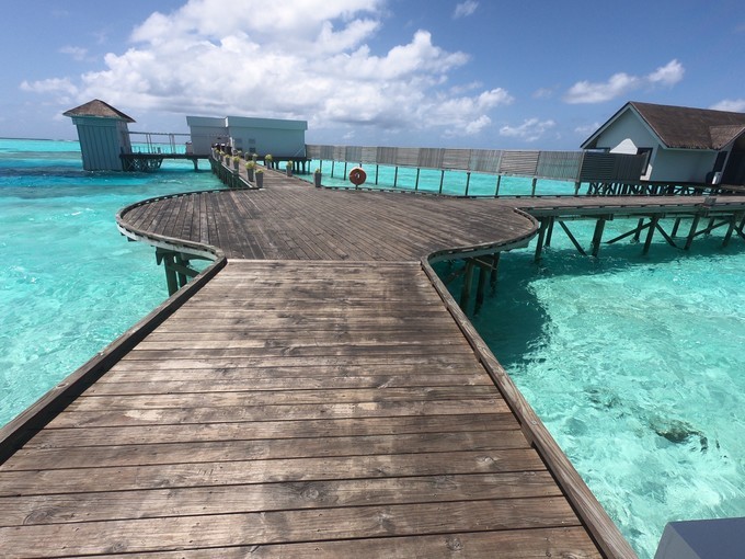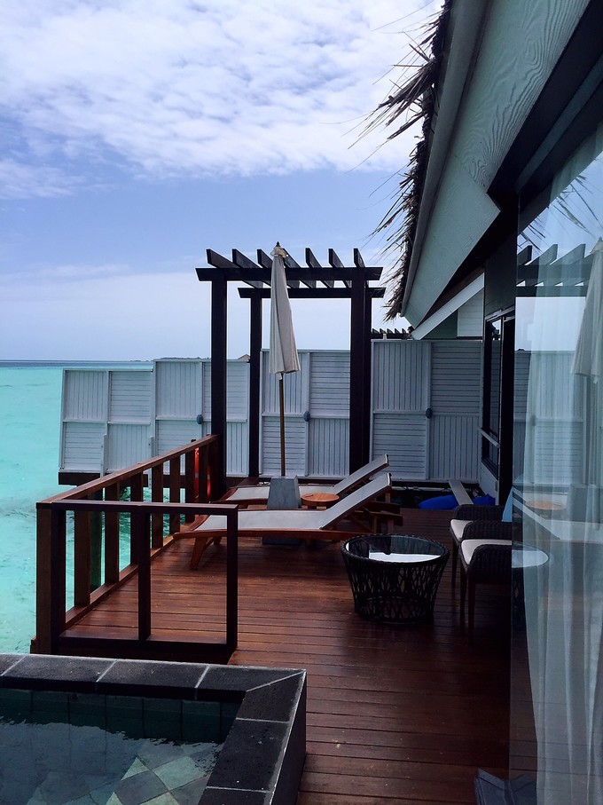 我住的是泳池水屋,在日落这一边。房间号310,属于中间位置房间吧。日落这边比日出那边的海浪要大一些!水屋下去可以浮潜,我跟我老公都不会游泳,所以我们两人都没有下水浮潜,也没有出海浮潜。看到隔壁房间的小伙伴在海里浮潜真的好羡慕!