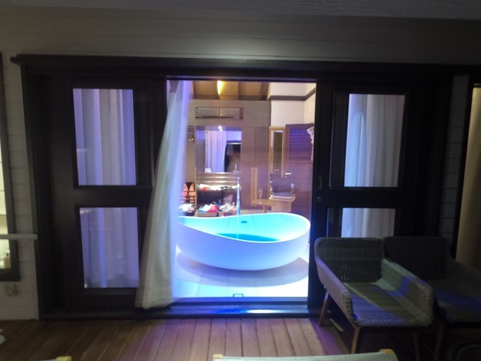 对于 奥臻岛 ,很满意。有我想要的海底餐厅,有我想要的露天淋浴和浴缸,有我想要的网床,有蓝天白云,有大太阳,一切都很美好!
