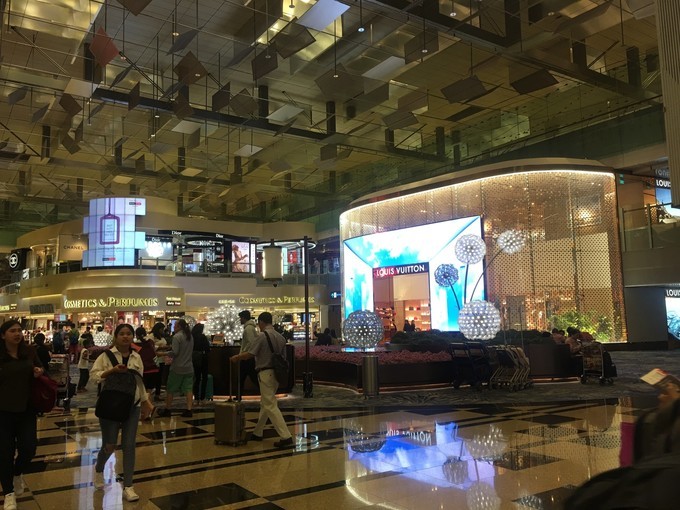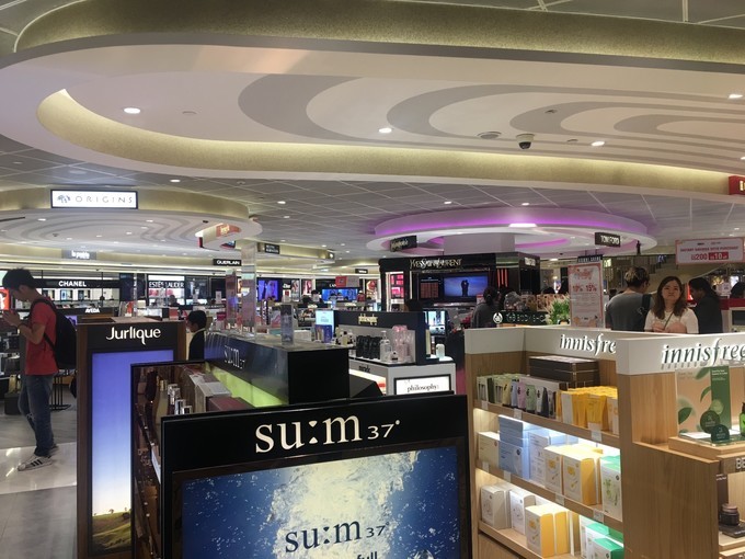 新加坡 航空的值机柜台是在N,分为商务舱,经济舱,团队柜台,团队柜台没人,空姐示意我们可以去那边办理,所以很快就办好了,排队过海关,去免税店逛起来。因为是新机场,免税店的店面不算多,护肤还算齐全,买两件9折。刚好有安耐晒 小金 瓶,就买了两瓶。也还有托运我们家客户推荐的娜扎同款的娜丽丝防晒喷雾,据说比较清爽。