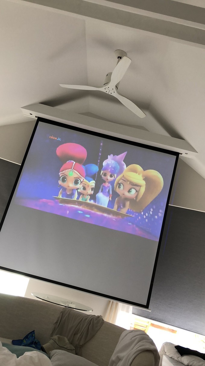 丽世的浪漫水屋里面是有投影仪的,藏的非常隐秘,一般人是找不到的。遥控器在空调遥控器那边,可以将电视上面的投影到大屏幕上面看。