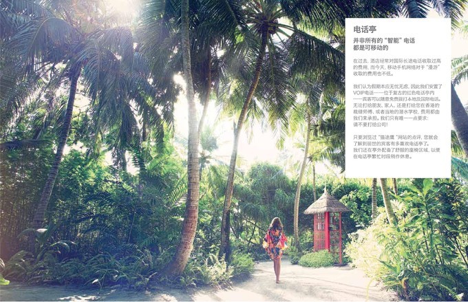 出来度假不想被电话,社交等影响,只要安静的享用假期,很多人不愿开通国际长途,但是上岛后又想给家人报声平安,那么贴心周到的丽世,即使你没有开通国际漫游,也可以随意的给你的亲人,朋友打国际长途电话。