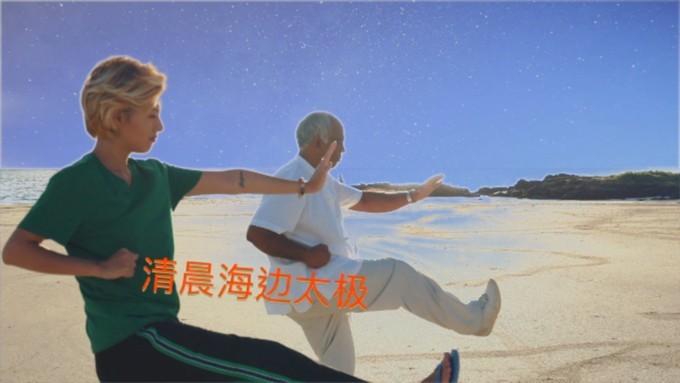 2.海边清晨太极,太极大师教客人打太极拳