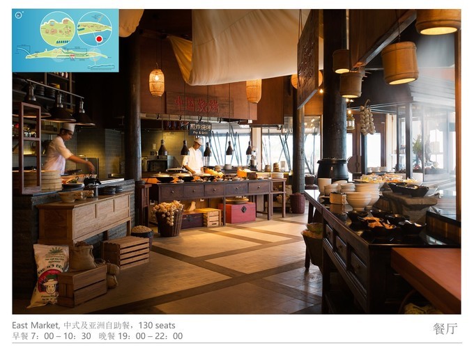 两间自助餐厅,中式及 亚洲 餐厅的自助餐(又称为东方集市)和国际自助餐厅。自助餐厅不需要预约,就可以去的。东方集市特别适合 中国 胃。