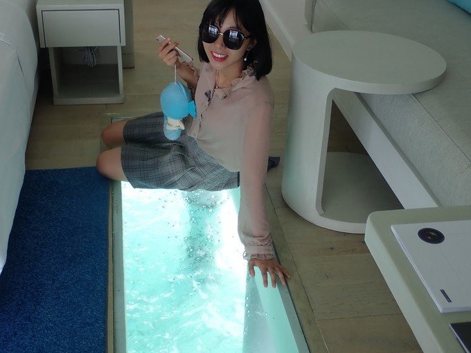 我们住的是浪漫泳池水屋,一直对浪漫水屋的吊篮,星光泳池垂涎三尺,看着大家拍的照都还唯美浪漫的,波不急待想拍照,玻璃门开了半天,终于打开了,真的很美,美轮美奂的!已经深夜了,还是赶紧洗洗睡吧,明天还要去打卡拍照呢。中文服务告诉我们明早给我们准备了漂浮早餐,就等漂浮早餐拍照了!