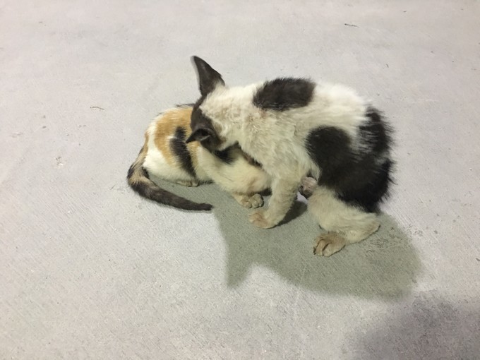 中转岛的猫妈妈带着猫宝宝。猫妈妈满满的宠爱。