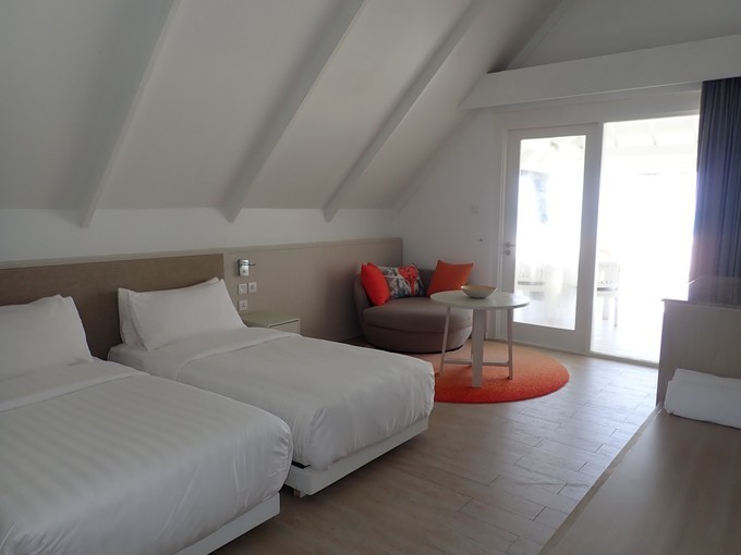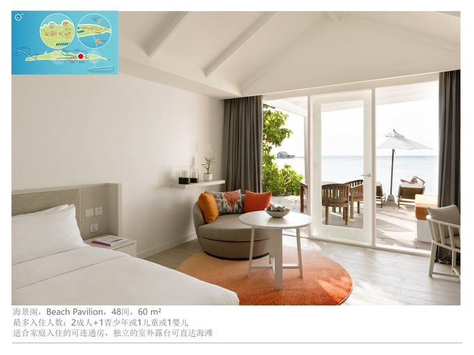 Beach pavilion:沙滩阁,沙滩阁其实是适合家庭游的,一个主卧,一个儿童房连在一起的,仅一门之隔,如果是两人入住的话,中间的门将会锁起来,隔壁有人住的话,私密性会比较一般。但是这个房型的价格比较好,如果不在意价格,推荐入住Beach villa,沙滩别墅。