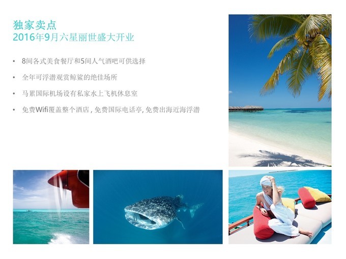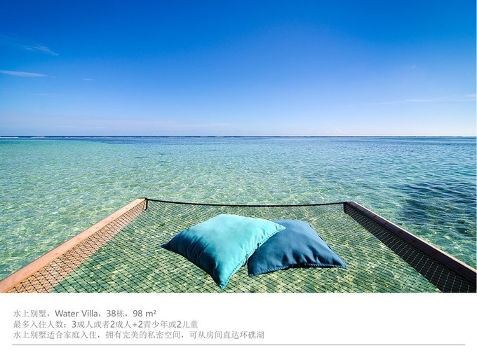 1.拖尾沙滩(细软绵长的 白沙 滩搭配着美丽的泄湖景观,浪漫绝美,相得益彰),早上退潮之后,拖尾沙滩直接绵延到浪漫水屋的前面,私人泳池走下去就是细软的 白沙 滩,浪漫水屋房间号118-101退潮之后都能惊现 白沙 滩的,大家记得申请喔。