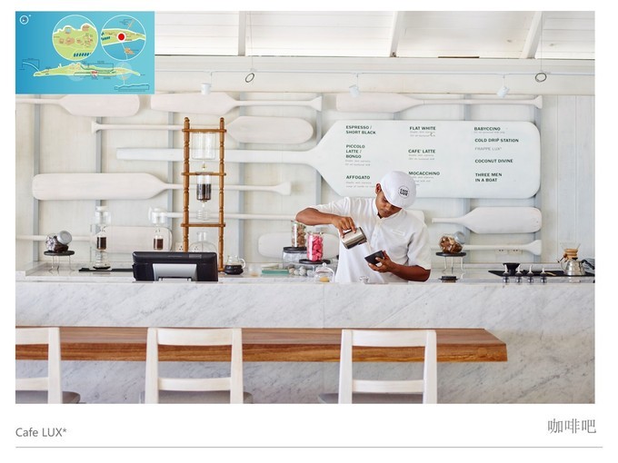 全球唯一一家有咖啡品牌的度假村,丽世LUX咖啡品牌,在用早餐的期间,每天早上7点-9点半可以点免费的咖啡,像卡布奇诺,摩卡等等,都是可以根据自己的喜好来点的。