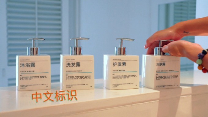 5.中文标识的洗发水,沐浴露,给 中国 客人使用