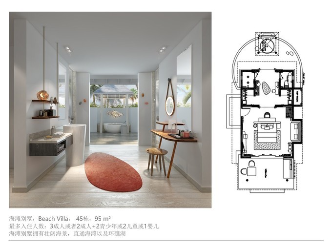 划重点:岛上所有的房型,除了浪漫水上泳池别墅没有浴缸,其他所有房型都是有浴缸的。在意浴缸的小伙伴要注意了。