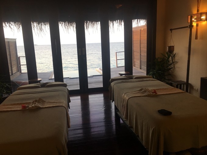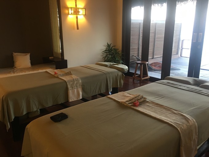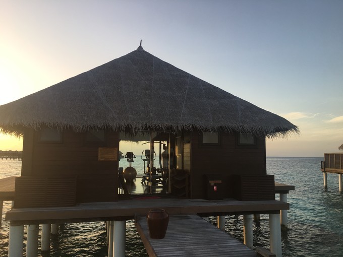 健身房往前走几步就是SPA馆了。SPA馆建在水上,总共有8间。自有品牌。SPA套餐很多,有全身按摩,面部和头部护理,还有转给怀孕期间的准妈妈准备的按摩,有足部按摩,穴位按摩,热石疗法,手和脚的护理,还可以做美甲,修脚等等。特别丰富,总有一款适合您!SPA营业时间 10:00-21:00。
