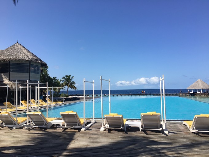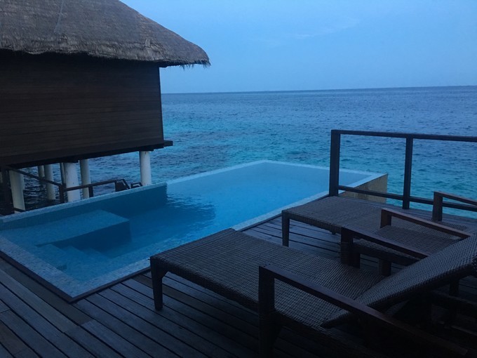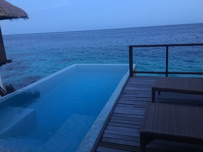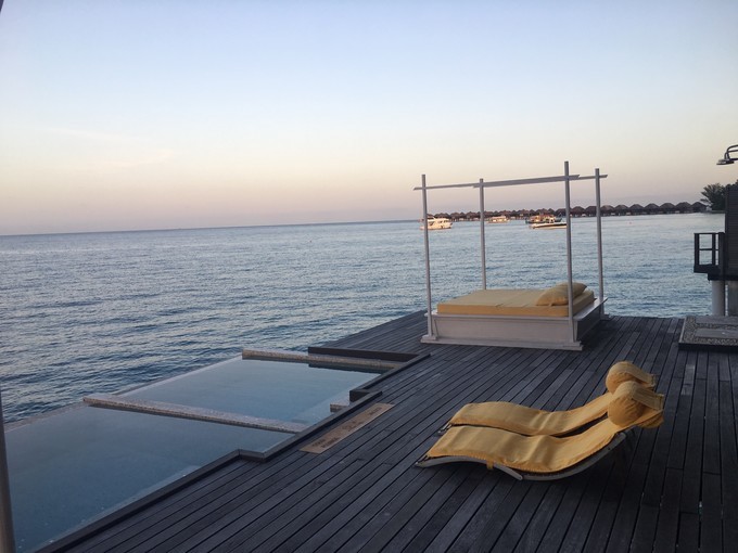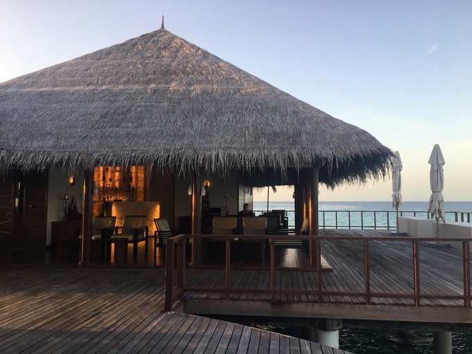 我们首先去的是Coco Residence,波杜希蒂最好的水屋房型。SPA馆,健身馆,瑜伽亭,stars restaurant and stars bar,都是在这边的。CR 房间号601-623是日落朝向的,602-624是日出朝向的,也就是双数日出,单数日落。波杜希蒂的房间都是 马尔代夫 传统的茅草加盖屋顶,Coco Residence房型有一个带凉亭的户外阳台和一个泳池,有宽敞舒适的卧室加上宽广的休息室观景区,一间大浴室,室内和户外都有淋浴设备和浴缸。