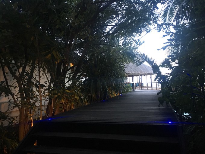 Coco residence 需要经过stars restaurant和stars bar,房间号616-618这个地方有一个浮潜点(SNORKELING POINT),这边适合浮潜,能看到很多鱼群。两排水屋中间的椭圆形里面也能看到魔鬼鱼之类的。