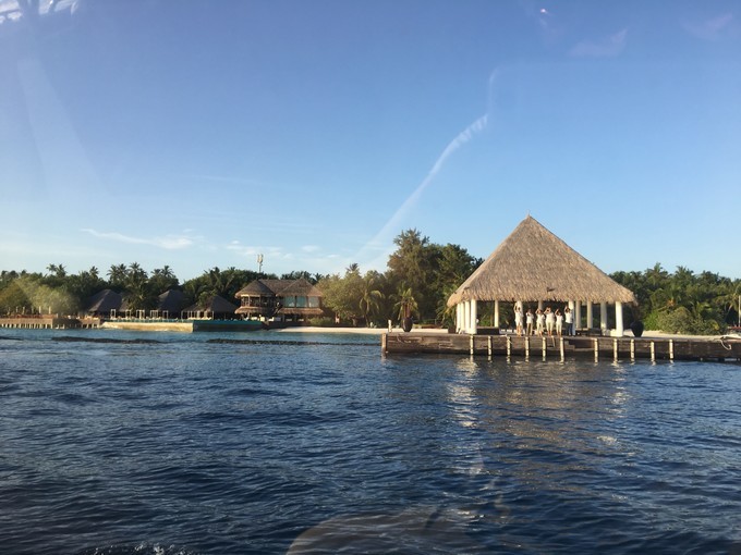 到了 马累 国际机场,波杜希蒂的机场接机人员已经在等我们了,核对好名字,给我们行李上挂上牌子,然后人到齐,就拉着我们的行李,带我们去码头那边坐快艇,上快艇之前会发给我们救生衣,穿好之后,上船,然后会有小黑送来冰毛巾,然后给我们一人一瓶矿泉水,小黑把行李装上船之后,就出发了,听着马达的声音,伴随着海浪,吹着海风,风平浪静的时候,不会觉得快艇颠的,会特别舒服,特别享受,享受这大海的宽阔与包容,会让你瞬间觉得什么烦恼都没有了。