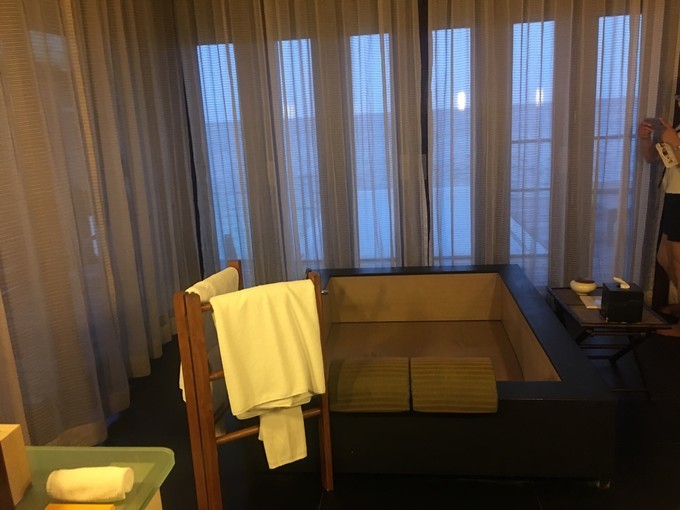 房间里面的浴缸,不带按摩功能的,浴缸都是面朝大海的,可以边泡澡,边看海景。