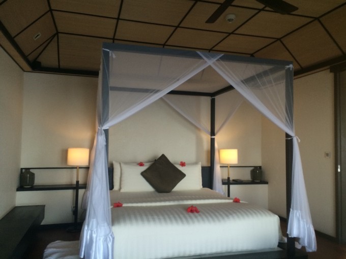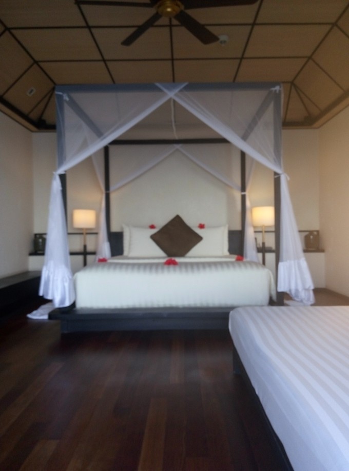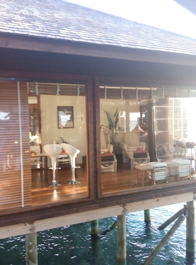 2开头的是礁湖水(lagoon Villa),我们去的时候房间住满了,所以没有拍到照片。有一张远远的照片。礁湖水只有16间。201-216,礁湖水是两栋连在一起的。在码头上能看到,总共是8栋。