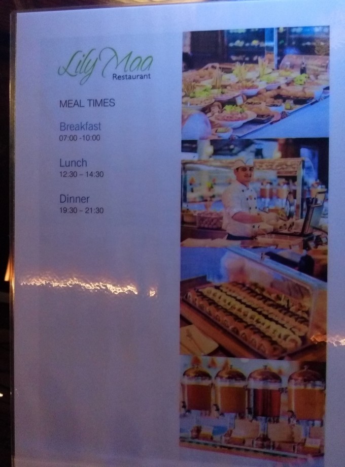 这个是莉莉的前台,然后往里去是一个酒吧(Spirit Bar),在往里就是主餐厅了,Lily Maa-restaurant,也就是主餐厅。餐点时间还没有到的时候可以去Spirit Bar 喝点东西,酒店里面的座位上面有酒单的,有价格的是收费的,没有价格的都是免费的。莉莉岛几乎都是 中国 人,或者 韩国 人和 日本 人选择的特别多。 亚洲 面孔。