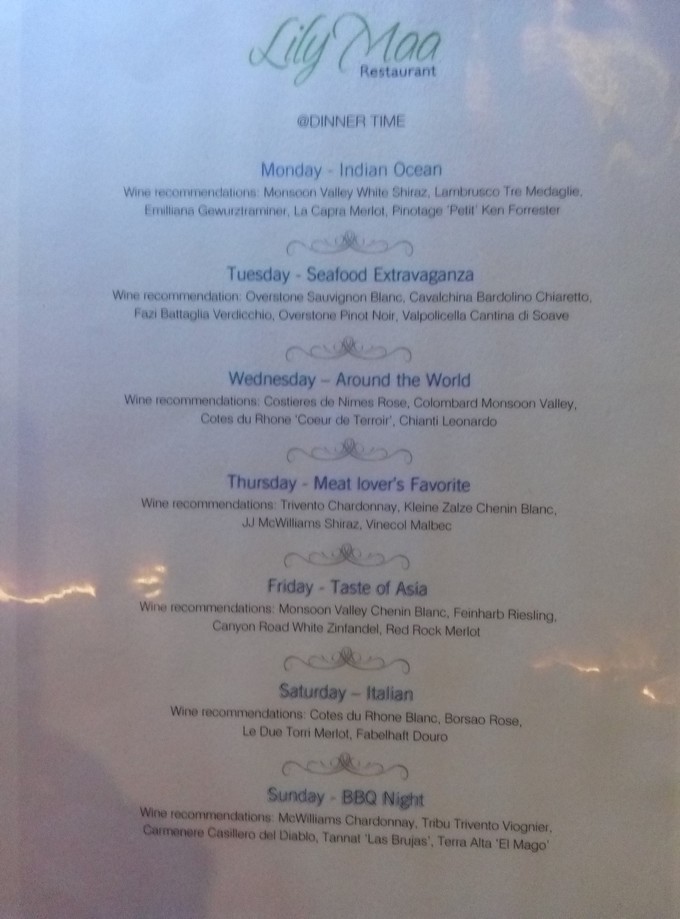 Lily Maa 主餐厅的各种美食,每天都是有不同的主题餐的,主餐厅主题之夜: