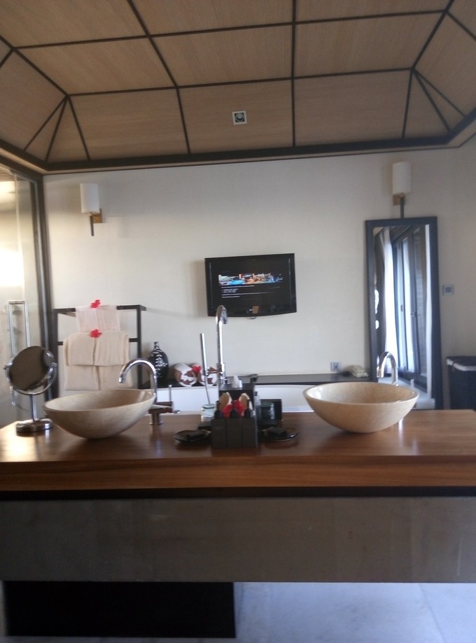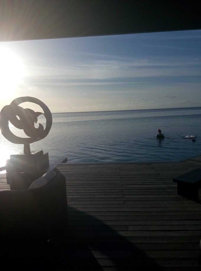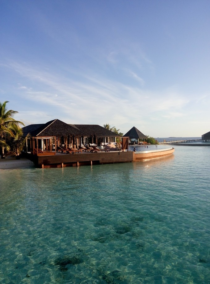 莉莉的无边泳池。下面的浮潜很棒,海水也很清澈。离水屋很近的。AQAV Pool Bar,还有现场驻场的乐队,很high!