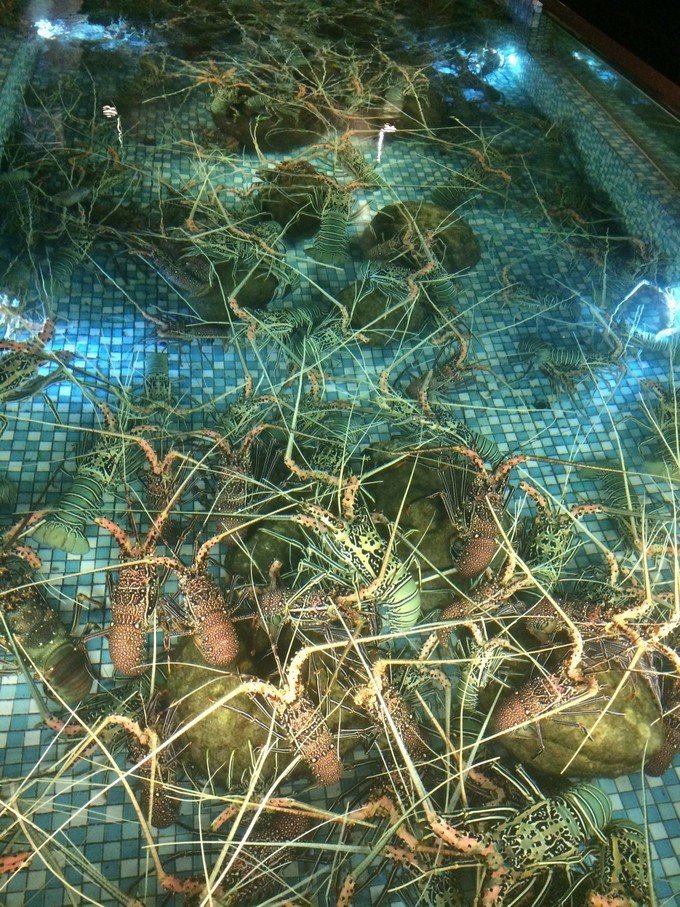 一进门的右边就能看到新鲜的大龙虾。龙虾餐是需要付费的,午餐和晚餐都是可以吃的。$20美金/100gm。