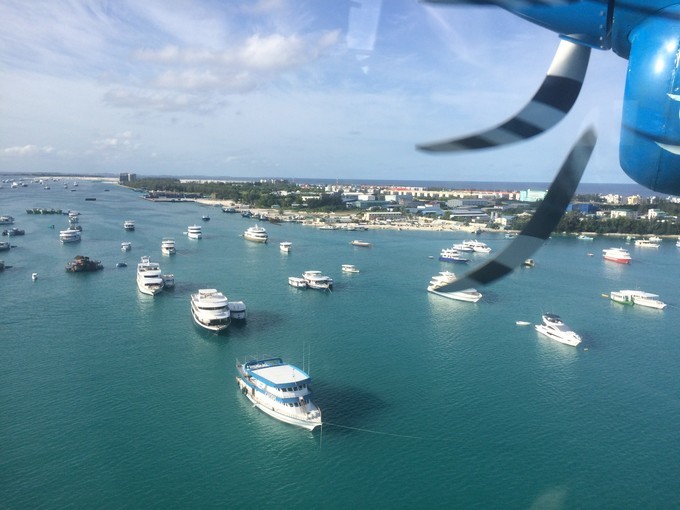 马累 机场岛附近的海域,各种船舶忙碌着。