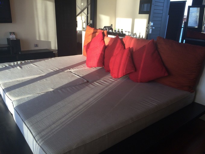 这个就是日落套房的大床了,夕阳都笼罩在房间里面。