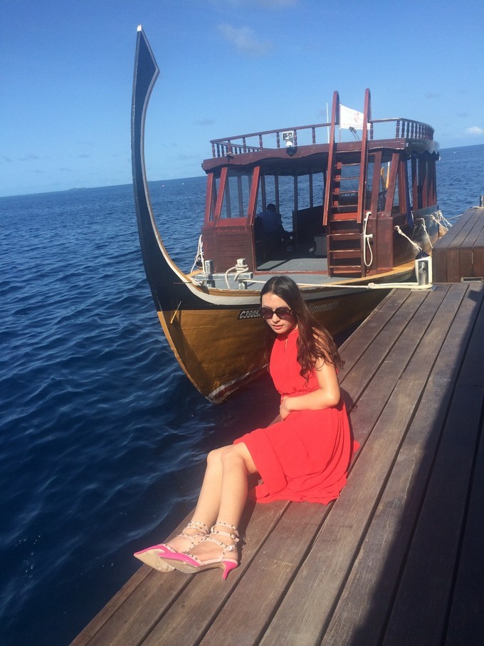 莉莉的多尼船来接我们上岛了。多尼船上面有一位船长,两位船员。还有一个接我们的中文服务。上船之后,中文服务会给我们送来冷毛巾,然后饮用水,最后还有准备好的水果串,很贴心。 离岛 的远处我们一直在猜哪个是莉莉呢,后来看船头调转方向了,我就知道了。途中还遇见了一个无人小岛,应该是情侣私人地址的蜜月晚餐地点,属于两个人的地方。哇塞,好浪漫。我们看到了码头,已经有工作人员在码头迎接我们了,这阵仗。船上只有我和小伙伴,受宠若惊啊。到岛上差不多5点左右的样子。带我们去前台之后,然后我们就是环岛一周。