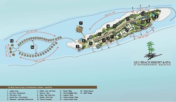 SPA馆离水屋很近。来一张岛上的分布图。