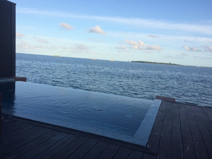 大泳池,对面就是维拉蔓豪Vilamendhoo。豪水的另一边就能看到维拉蔓豪了。
