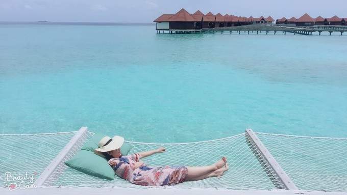 每天早上的日出打卡是很有必要的,每一天都不一样。住两天沙屋看日出,日出就在沙屋往前走几个房间,很近。两 天水 屋看日落,日落酒吧就在水屋入口。住在水屋想看日出,结果要穿过一片树林,真的很麻烦。
