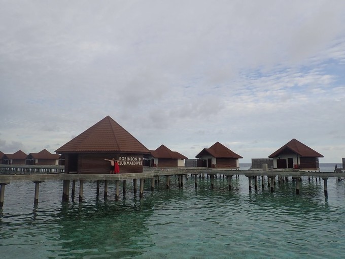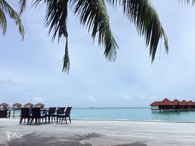之前大家选岛的时候,有人会纠结内飞水飞,我觉得内飞也挺好,也能看到海景。经历了一小时内飞、20分钟快艇,在见到水屋那一片房子的时候,真就觉得一切都值得了。岛上中文go小高来迎接我们,带我们去餐厅吃饭,帮我们办理入住,特别热情。我是害怕不能升级直接定了beach vill ,不过和我们一起登岛的小伙伴都升级了,小伙伴们可以参考一下,升级率还挺高。小高还会发一份spa15分钟优惠券、明信片优惠券、各种注意事项什么的,大家一定要好好阅读(我之后在岛上见过一次小高,真心觉得他工作真的很辛苦,大家有什么问题其实在他发的材料里面都有写,基本都可以解决)