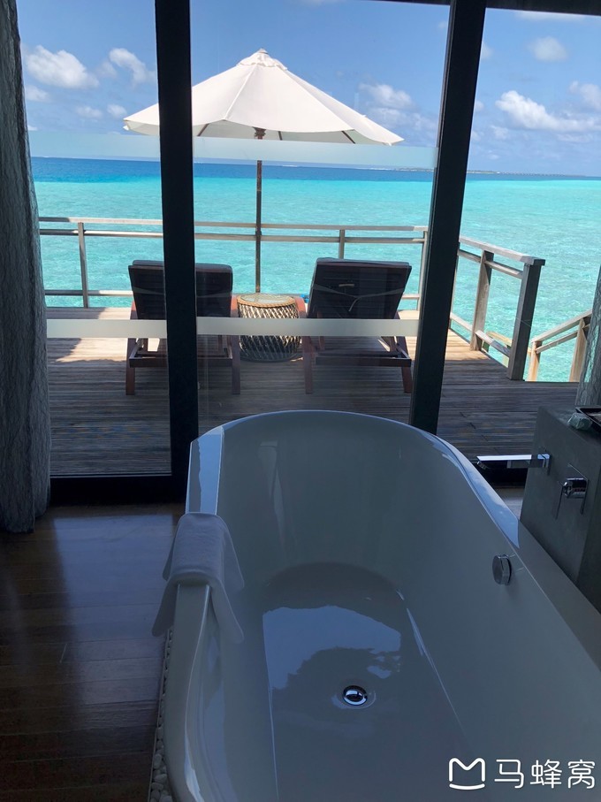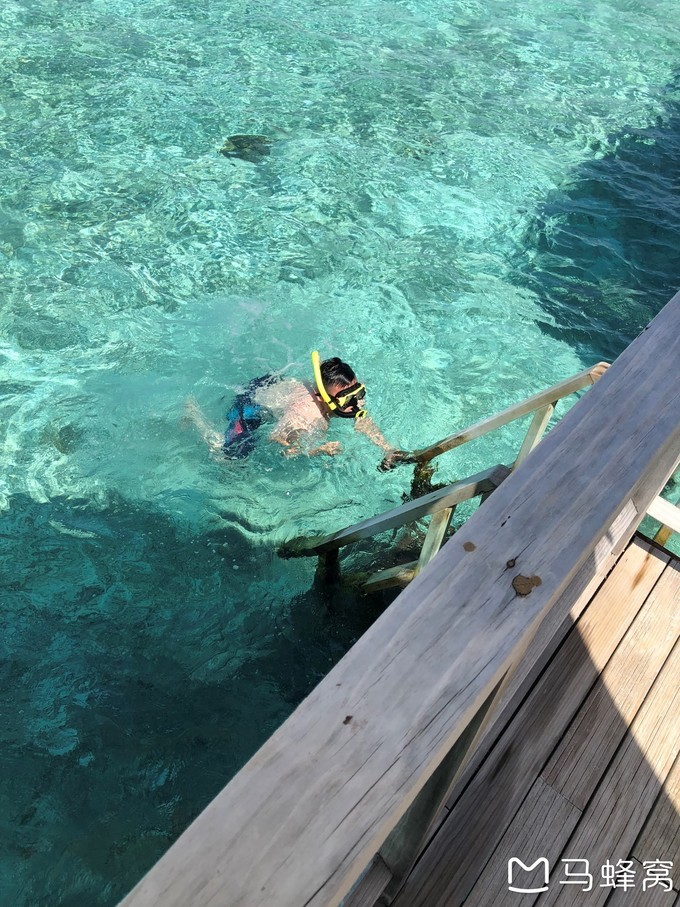 这个酒店私人泳池太小,所以放弃了带泳池的水屋,选择了风景好的豪华水屋。