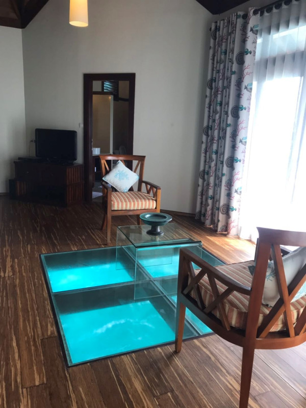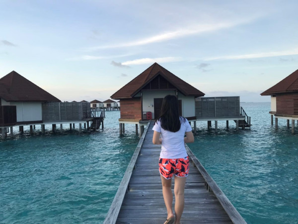 因为知道水屋可以直接下水浮潜,所以前两天住沙屋就没考虑浮潜的事,但是也陆陆续续看到好多人浮潜,也期待着我们第一次的浮潜。期待着,旅程过半,换到了水屋。