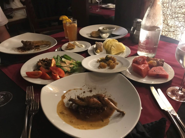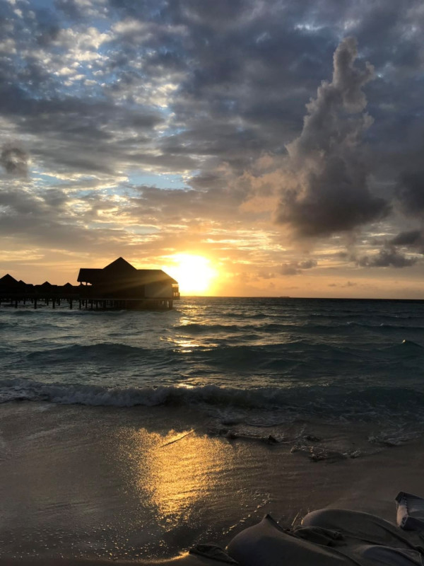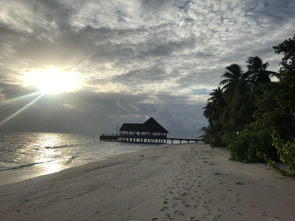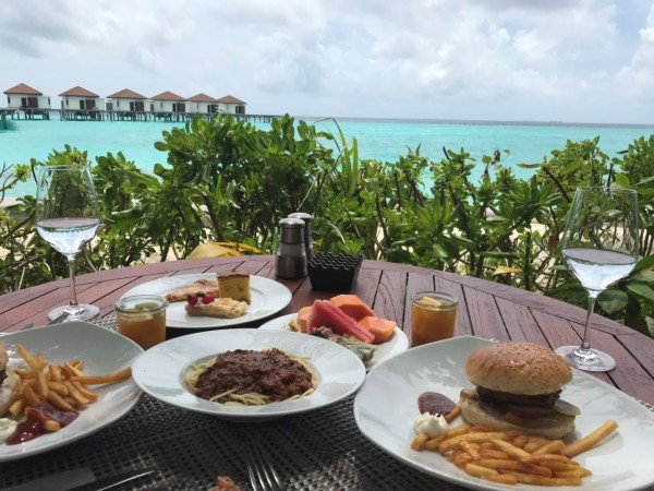 马代天黑的晚,日落一般是七点左右,到七点半吃饭的时候基本就全黑了,这个时候也是岛上人最多聚集在一起的时候,白天里安安静静见不到太多人的小岛,到了晚上大家在一块吃晚餐,你才会发现原来岛上还是有挺多人的。