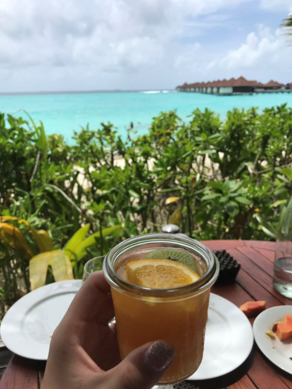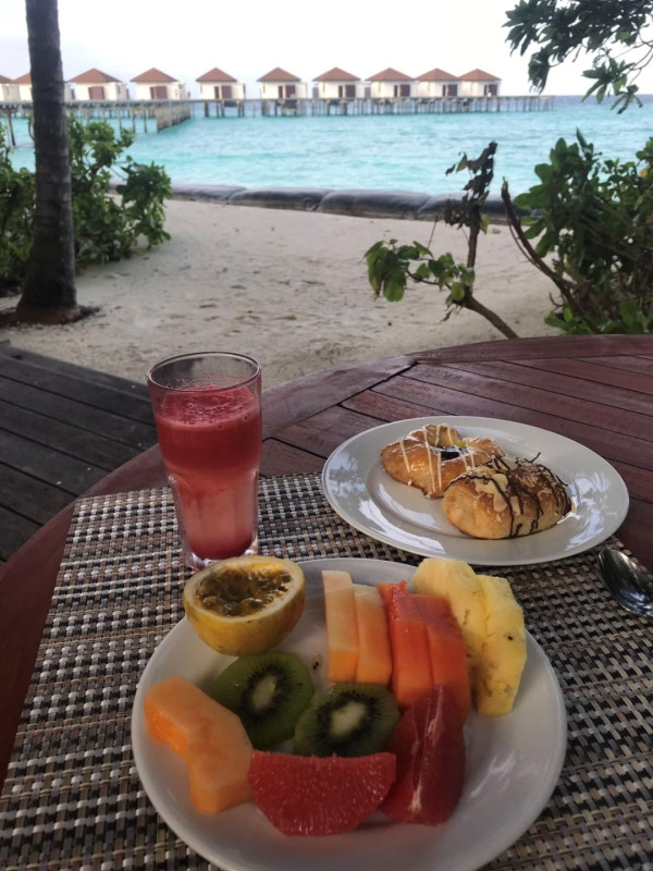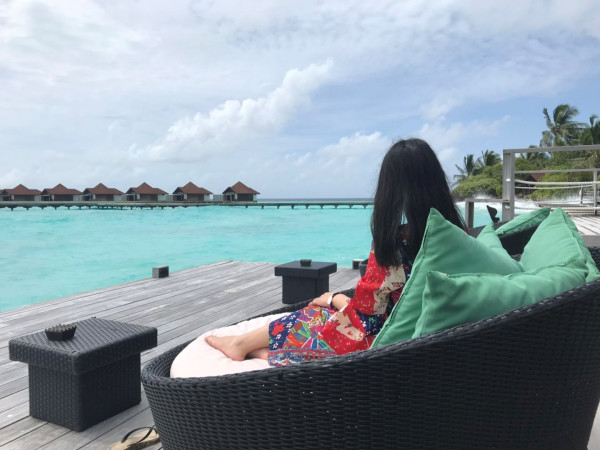 北京晚上零点的飞机,算上中间的转机等待,到达马累是中午12点半(马累要比北京慢三个小时),酒店的人接上我们以后先是买上内飞机票,然后到VIP休息室休息,等待内飞的飞机,休息室里有免费的餐饮和WIFI,到罗滨逊岛需要内飞1小时,然后需要快艇30分钟,其实这整个过程还是很蒙的,到了一个新地方语言也不通,小黑会给你巴拉巴拉说一堆,然后我也只能不懂装懂的点头,反正就是跟着他走,肯定错不了,哈哈。