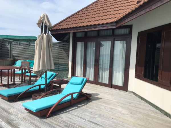 最重要的,来迎接我们的,是我们的同胞中国人,也就是中文管家。没有了语言障碍,沟通起来方便多了,办理入住非常快,管家给我们说了说岛上大概情况和注意事项,然后带我们到了沙屋。