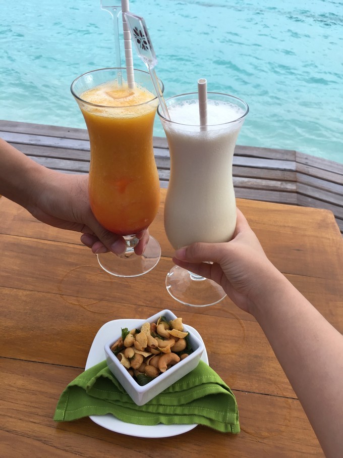 入住以后我们简单整理一下去前台预约了一下这几天的活动,预约了两个人的浮潜课、观海豚和SPA,之后搭船去了对面的瓦宾 法鲁 ,在岛上简单的吃些东西等着下午4:45的喂魔鬼鱼活动。